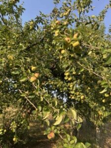 Nous serons de retour à l’automne pour la cueillette des pommes, des pêches et peut-être aussi des noisettes si nous avons le temps. Nous espérons faire du cidre comme en 2022 où nous avions récolté environ 150 kilos de pommes.